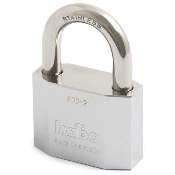 Hänglås av härdat stål med dubbelreglad härdad bygel och skivcylinder.