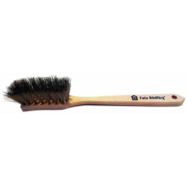 Tvättborste i klassisk modell från Falu Rödfärg som är perfekt för fasadtvätt av trånga utrymmen. Borsten har ett smalt borsthuvud med spänstig borst i högkvalitativ rostfritt stål som både är effektiv och skonsam mot träpanelen. Passar för att borsta bort färg vid stående lockpanel och vindskivor eller fönsterfoder. Skön att hålla i tack vare det slitstarka skaftet i obehandlad bok.