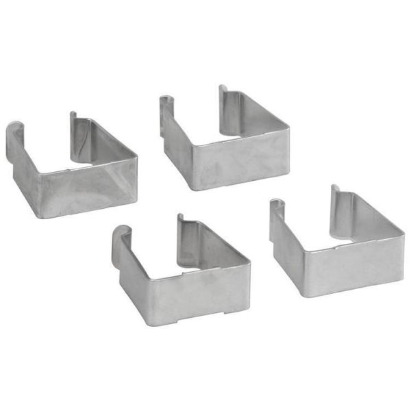 Clips för att sammankoppla och stabilisera två backstativ sida vid sida i Elfas kollektion. Clipsen förhindrar att backstativen glider isär. Använd två clips på framsidan och två på baksidan, där Gavelsidorna möts. Levereras i 4-pack.