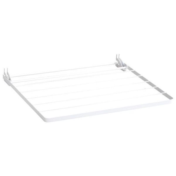 Torkhylla till Elfas hyllsystem. Lämplig för att hänga tvätt och kan vikas ner för att frigöra utrymme när den inte används. Integrerade skenfästen. Finns i olika bredd.