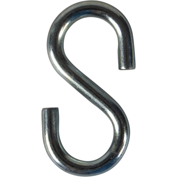 Blankförzinkad s-hake för användning vid upphängning av olika föremål.
