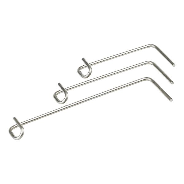 Art.nr: 3010208L-kramla med öppen ögla. Används som inmurningskramla i skalmuren och kombineras med väggfästen (nr 12, 13, 14) för förankring i bakomliggande vägg.