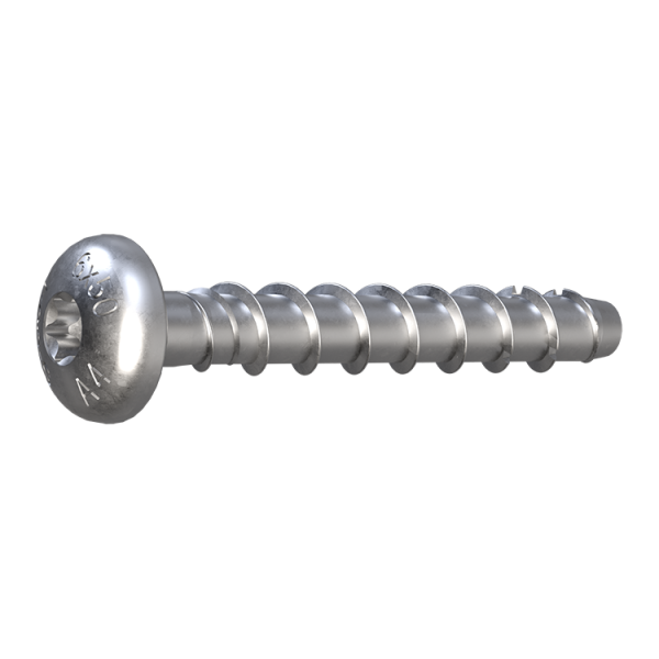 Sormat 9640095885 är en självgängande A4 betongskruv för genomsticksmontage. Kräver liten borrhålsdiameter. Inget föreskrivet åtdragningsmoment. Inga expansionskrafter, klarar små kant-och inbördes avstånd. Helt demonterbart. A4 för användning inomhus, utomhus och industriellt.