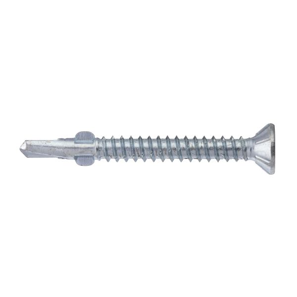 Funktion: Borrspets och gängor anpassade för förankring i stål upp till 6 mm. Vingarna fräser upp hålet i virket. När borrspetsen går igenom stålet bryts vingarna av. Rillorna under huvudet försänker skruven. Spårtyp/bits: TX 25 och 30. Material: Sätthärdat stål. Ytbehandling: Elförzinkad 5 my, för inomhusbruk. Monteringsanvisning: Skruvdragare med varvtal 1.000–2.000 r/m rekommenderas.