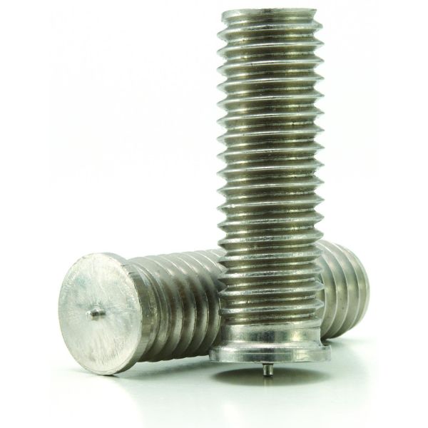 M-gänga. Svetsbult med tapp - typ PT enligt ISO 13918. Kvalitet- Rostfritt 1.4303. Bultsvetsning, kondensatormetod CD (svetsbult med tapp). CD-metoden är mycket lämplig för svetsning på stål, (ej belagd), rostfritt, aluminium och mässing. Systemet omfattar kompletta aggregat, både portabla och stationära. Metoden kännetecknas av ett mycket snabbt svetsförlopp som medger svetsning på tunna material och ger i de flesta fall ingen åverkan på baksidan av plåten. Exempelvis kan svetsning ske på plåt där baksidan är färdigmålad.