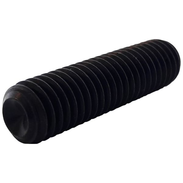 M-gänga. Stoppskruv SK6SS med invändig sexkant och skålad ände enligt DIN 916 (ISO 4029). Stål HRC 45 obehandlad.