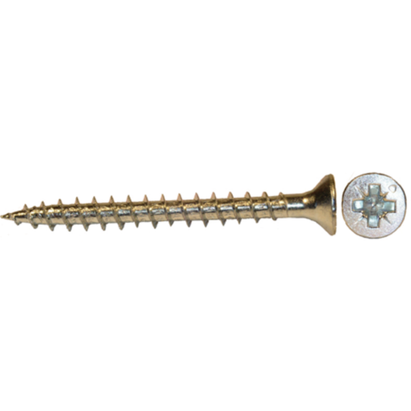 Träskruv med sänkhuvud och pozidriv krysspår.