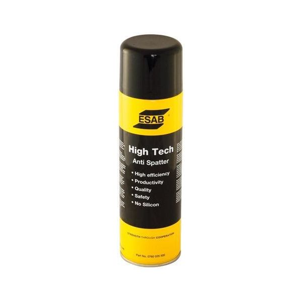 ESAB HI-TECH är en svetsspray som kombinerar effektivitet med miljö- och hälsoskydd. Mycket effektivt skydd mot svetssprut som vill fastna. Sprayen är absolut obrännbar. Inga hälsovådliga gaser bildas vid förbränning och produkten är ofarlig för huden. Använder ren luft som drivmedel, giftfri och ger ingen indirekt luftförorening eller bidrag till drivhuseffekten. Helt silikonfri och vattenlöslig. Unik design av burk och ventil gör det möjligt att spraya i alla positioner.