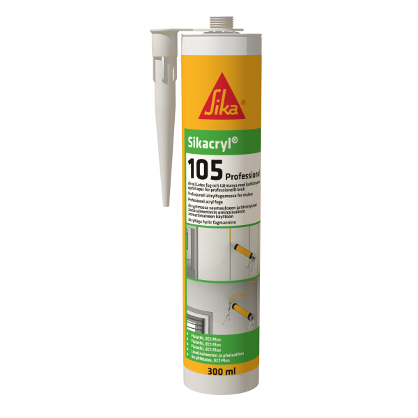 Sika Sikacryl 105 är en ljuddämpande fogmassa för tätning inomhus och kan med fördel användas för akustiktätning, tätning av sprickor, håligheter och andra öppningar.