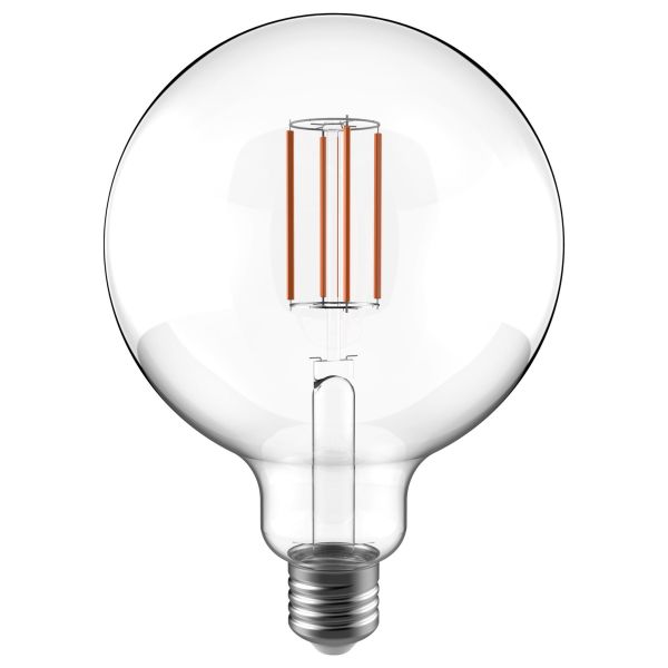 Led-lampa tillverkad med filament-teknik vilket gör att den lämpar sig som ersättare till traditionella, klara glöd- och halogenlampor. Ljuskällan sprider mycket ljus ner mot sockeln, vilket gör att den passar extra bra till armaturer där lampan installeras med sockeln nedåt. Ljuskällan sprider ett ljus med klar ton (4000 K) och kan tack vare sin dekorativa design användas utan skärm.