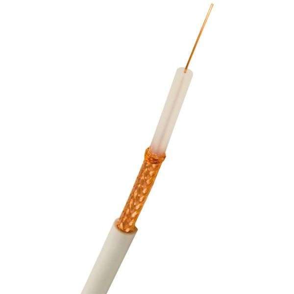 Art.nr: 3026131Halogenfri 75-ohms koaxialkabel. Innerledare av kopparbelagd ståltråd, dielektrikum av solid PE, ytterledare av blank Cu-trådsfläta samt vit HFFR-mantel.