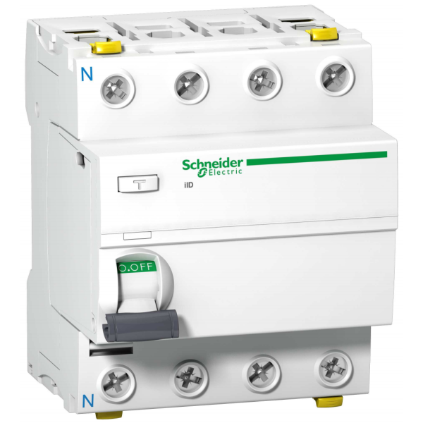 Schneider Electric Acti 9 iID är en 4-polig jordfelsbrytare i klass A med märkfelström 63A, 300mA (selektiv). En jordfelsbrytare av elektromekanisk typ som fungerar utan yttre spänningsskällor. Av typ A-SI som är korttidsfördröjd 10mS och har förhöjd stötströmstålighet 3kA. Jordbrytaren är även försedd med ett inre skydd som gör den anpassad för fuktiga och aggressiva miljöer.