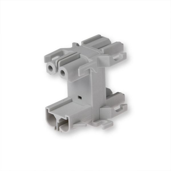Förgreningsdonet har en matning för hylskontakt och tre utgångar för stickkontakter. Kontakterna som kopplas till förgreningsdonet är definierade i kopplingsschemat. Förgreningsdonet kan vid behov monteras på underlaget med två skruvar, max. ø 3,5 mm, fastsättningshålens avstånd 38 mm.