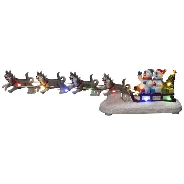 Art.nr: 3118165Konstsmide 4242-000 är snögubbar i släde med hundar, 10 färgade LED. 2xAA, timer på 6h.
