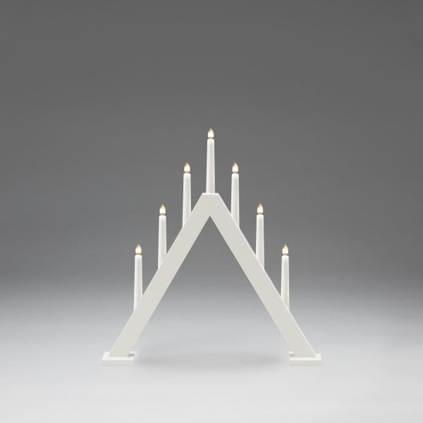 Ljusstake i matt vitlackerat trä med vit kabel. Adventljusstaken har en spänning på 230 V.