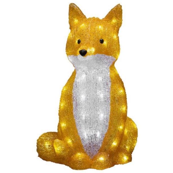 Sittande räv som är 40 cm hög. Drivs av transformator och har en anslutningssladd på fem meter.