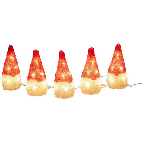 Konstsmide 6237-103 är 5 st små tomtar i akryl med 40 varmvita LED. 24V/IP44.