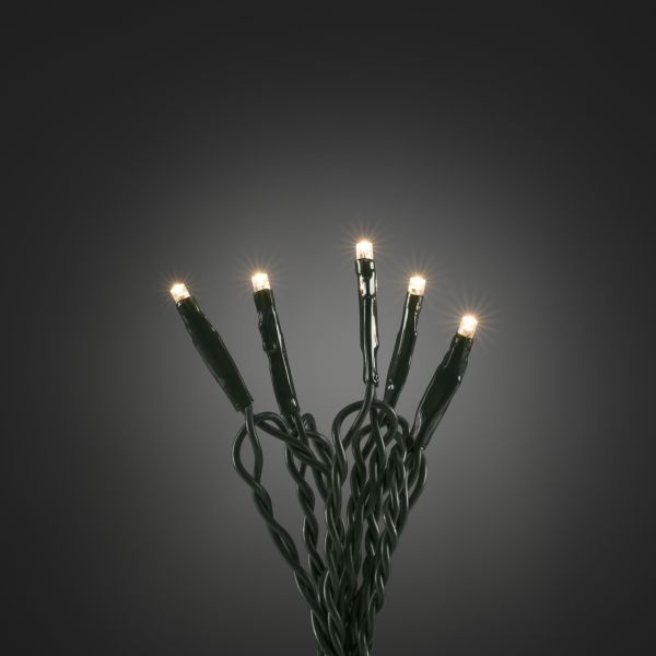 Konstsmide 6351-120 är en ljusslinga med 20 varmvita LED och mörkgrön kabel. 24V/IP20.