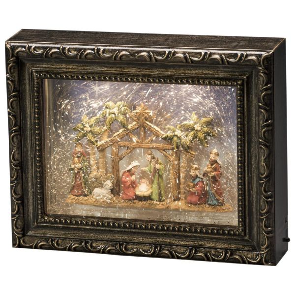 Konstsmide 4358-000 är en vattenfylld lykta, fotoram födelse. Varmvit LED. Timer 5h. 4xAA.