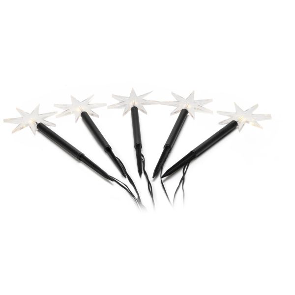 Konstsmide 4468-100 är fem stjärnor på pinne. 5 varmvita LED. 3V/IP44.
