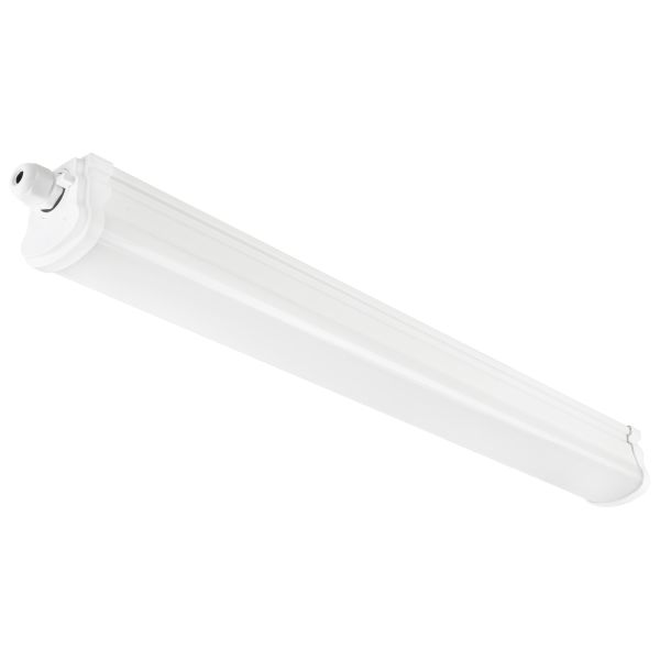 Nordlux Oakland 47716101 Lysrörsarmatur. Universellt användbar LED-list i IP65 med integrerade LED-lampor i en slimmad design, med högt ljusflöde och snabb kabelanslutningsplint, som en energieffektiv ersättning av traditionella IP65-fixturer. Denna produkt med en extra lång livslängd på 25.000 timmar har möjlighet för sling-in / sling-ut-ledningar.