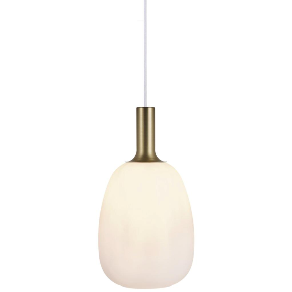 Art.nr: 2990484Pendelarmatur med enkelt opalvitt glas och fina detaljer i borstad mässing. Varma metaller skapar en fin inredningsdetalj och kombinationen av mässing och glas ger serien ett graciöst utseende och materialen kompletterar varandra på det allra finaste sätt.
