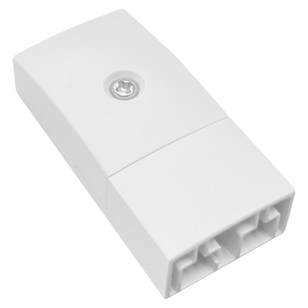 Skarvstycke till Scanled PRO-serien. Används i änden av en spänningsförande skena, till exempel för att fortsätta kabel från överskåp till nytt överskåp.