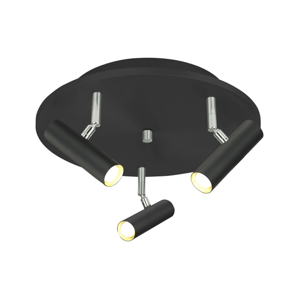 Art.nr: 4044222Dimbar spotlight Artic från Aneta Lighting i svartlackerad metall med detaljer i krom. Denna spotlight har 3 ställbara spothuvud på en rund takplatta med LED-ljuskälla som ger behagligt varmt vitt ljus.