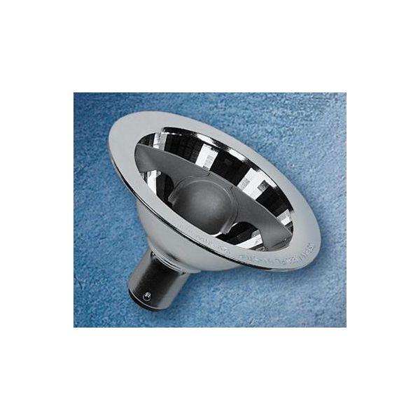 Halogenlampa med aluminiumreflektor och grepp-avbländning. Får användas fribrinnande. UV-stop.