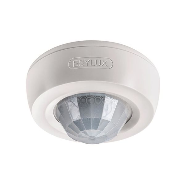 Närvarodetektor 360° för utanpåliggande takmontering, räckvidd ca Ø 24 m, nollgenomgångsomkoppling, kan fjärrstyras