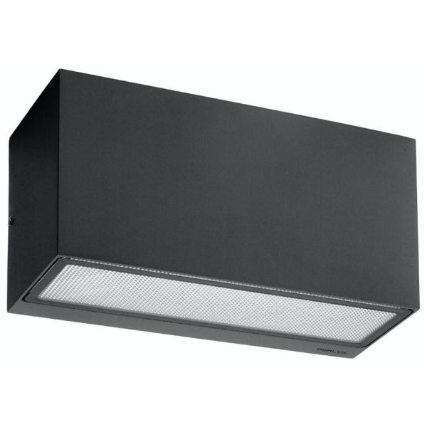 Modern och stilren väggarmatur i gjuten aluminium med nedljus. Max 46W, opal glas.