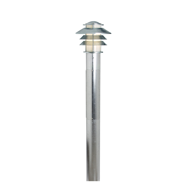 Pollararmatur med rotationssymmetrisk ljusbild. Kromaterad och pulverlackerad med frostad akrylcylinder. Armaturen har en E27-sockel max 75W . Pollaren har kopplingslucka och fotplatta 125x125 mm anpassad för fast underlag alternativt för markjärn för ingjutning.