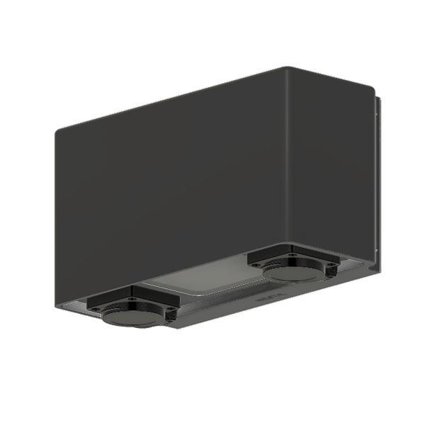 Väggarmatur med en stomme i aluminium med ett mikroprismatiskt bländskydd. Bestyckad med en utbytbar LED-enhet. Bakstycket har två in- och utgångar, samt 4-polig snabbkopplingsplint för enkel vidarekoppling. Armaturen är för inom- och utomhusbruk IP44. Utrustad med tryckutjämningsventil för att motverka kondens i armaturen. Passar för bruk både i privat och offentlig miljö.