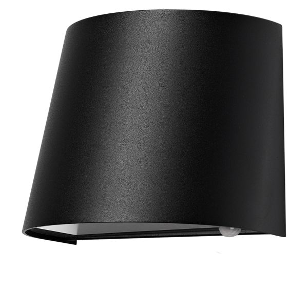 Väggarmatur med avbländat nedljus. Anodiserad och pulverlackerad stomme i aluminium, bländskydd i PET-G. Armaturen är bestyckad med en LED-enhet och PIR-sensor. Färgtemperaturen är varmvit med en ljusbild som lyser ned. Bakstycket har två in- och utgångar samt snabbkopplingsplint. Passar för bruk både i privat och offentlig miljö.