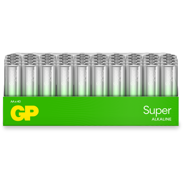 GP alkalibatteri Alkali‑Mangan (Mignon R6/AA) är avsett för vardagsanvändning i apparater som fjärrkontroller, väggklockor och radioapparater. Batteriets märkspänning är 1,5 V och varje cell har en höjd inklusive pol på 50,5 mm, en diameter på 14,5 mm samt en vikt på 24 g. Förpackningen innehåller 40 celler fördelade på tio plastade fyrpack, och batterierna har testats i högströmsapplikationer enligt IEC 60086-2:2021 MAD.