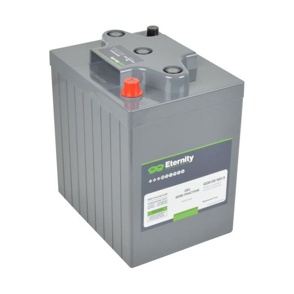 Eternity Gelbatteri är utvecklat för hårda cykliska applikationer och är absolut underhållsfritt med högkvalitativ patenterad ventilteknik. Det har goda högströmsegenskaper och en lång livslängd med 700 cykler enligt IEC 61427/60896-21/22. Batteriet har låg självurladdning på mindre än 3 % per månad vid 20°C och är ett VRLA-batteri (tätat/ventilreglerat). Det är idealiskt för elektriska fordon, husbilar, husvagnar, båtar samt andra cykliska tillämpningar.