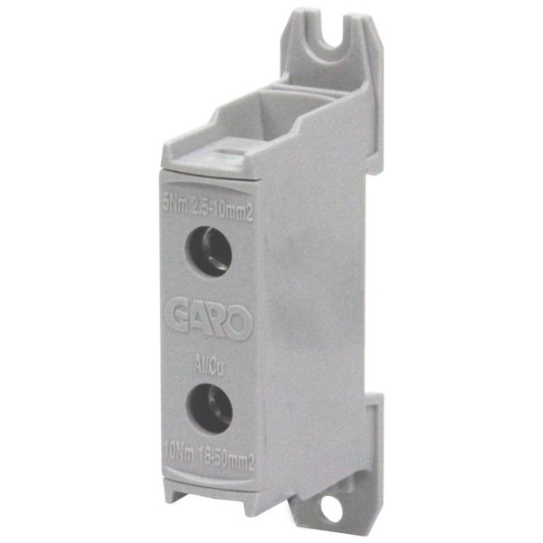 Art.nr: 3101312GARO GKL är en serie av plintar för kabel från 2,5 mm² upp till 240 mm² koppar och aluminium för DIN-skenemontage eller skruvinfästning. Finns för enkel- eller dubbelmontage och i tre färger: grå, blå eller gul/grön.
