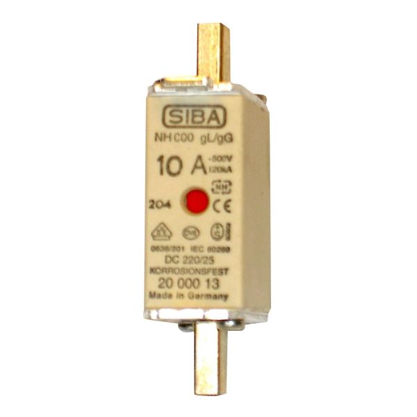 Knivsäkring från SIBA i storlek 1. Säkringen har en nominell märkström på 50 A och 120 kA i omkopplingskapacitet. Säkringskonstruktionstyp NH1 enligt IEC 60269. Levereras i 3-pack.