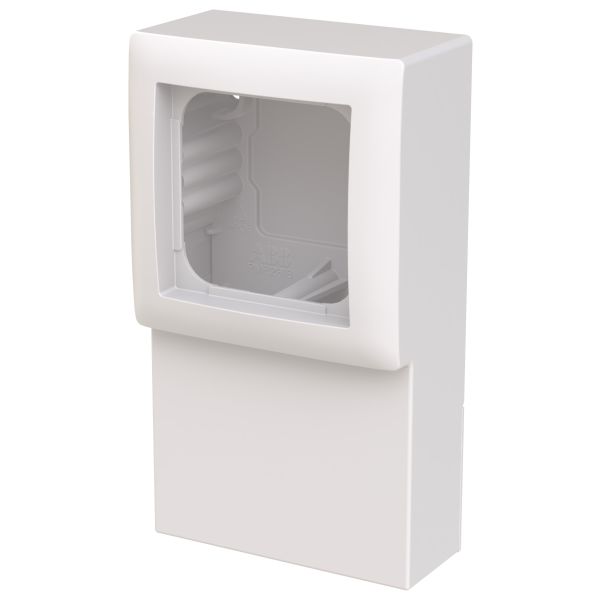 Monteringsdosa att montera vid golvsockel. Utanpåliggande monteringsdosa SAGA för en 1-vägsprodukt. Denna box är lämplig för enheter med maximalt installationsdjup på 30 mm. Biocirkulär plast används i botten och centrumplattan.