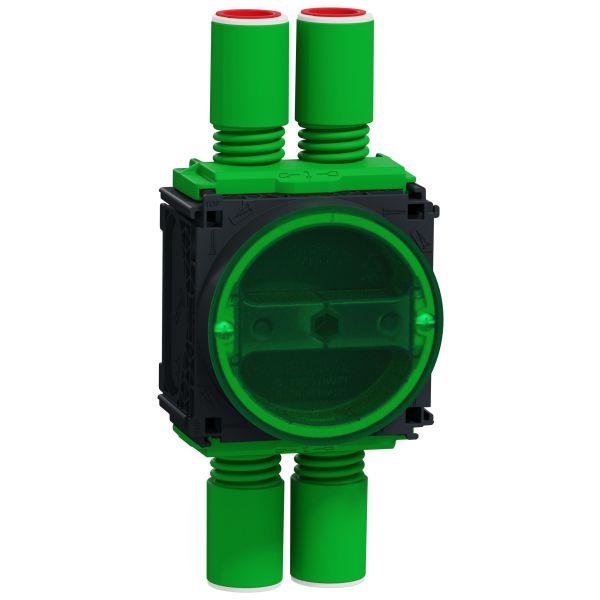 Enkel apparatdosa med justerbar ring för infällt bruk. Dosan är flexibel i 1-moduls utförande. Med gängad, justerbar skruvring inklusive putslock. Rymmer även större apparater. Kan smidigt kopplas ihop med andra apparatdosor utan tillbehör. Passar på en skivtjocklek på 13-26 millimeter. Flexibla avtagbara dubbelstutsar i båda riktningarna, passar både Ø16 och Ø20 mm rör.