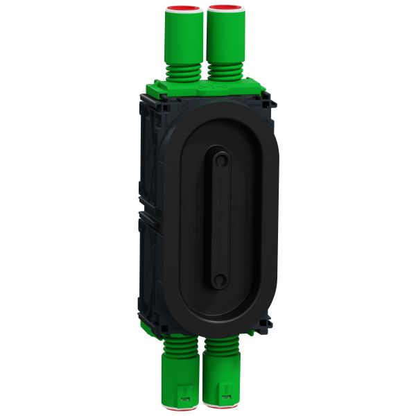 Art.nr: 3093737Apparatdosa, dubbel 2M. Skivtjocklek 13 mm med brandskyddsplatta och fyra flexibla kombistutsar 16-20 mm.