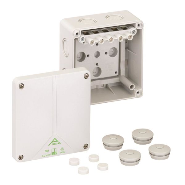 Kopplingsdosa Abox enligt DIN EN 60670 (VDE 0606), Ui=690V, med självtätande, mjuka införingsmembran med skyddsgrad IK07, Skyddsklass II, VDE-godkänd,