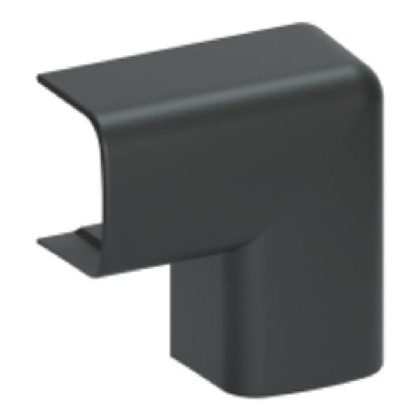 Art.nr: 3131762L-stycke för 90° avvinkling av minikanal OptLine. Snäpps fast mot underdelen samt täcker över skarven mot fronten med ca 5 mm.