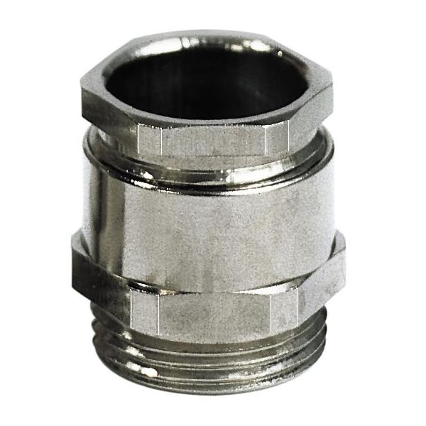 Kabelsförskruvning tillverkad av förnicklad mässing med metrisk gänga. Försedd med gängad sexkantig ytterhylsa enligt EN 50262, samt skivad neoprenpackning och två stycken brickor av galvaniserat stål. 1476070: Endast försedd med fast packning 4-8 mm.