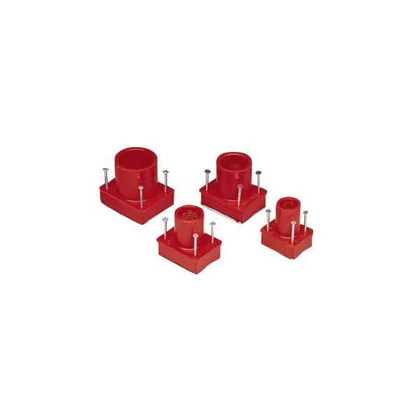 Rak genomföringsmuff med monterade spikar. Av termoplast. Fästes på valvform vid övergång till mellanvägg. Försedd med låslim för rör och folie för extra tätning mot form. Dessa muffar är avsedda att fästas på plåtform eller formvirke för att tjäna.