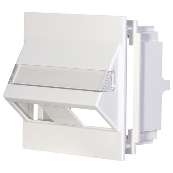 Art.nr: 3105472En vinklad fästram för fönsterbänkskanal inklusive namnskylt och öppen botten för två till tre modularuttag.
