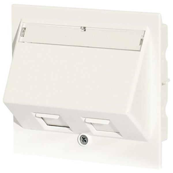Art.nr: 3105587Ett datalock med märkfönster för 2xRJ45 hålbild Keystone, vit. Hålmått: 19,2x14,8 mm.