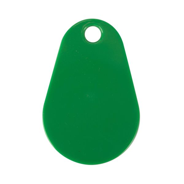 Tunn tvåfärgad tålig MIFARE Classic-bricka med hög finish. Märkning för Axema VAKA. Ena sidan är vit, den andra sidan är grön.