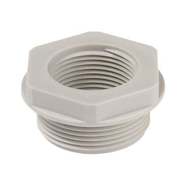 Art.nr: 3031669Reducering av grå glasfiberförstärkt polyamid enligt RAL 7035. Försedda med liten metrisk innergänga och stor metrisk yttergänga.