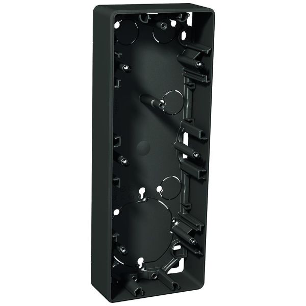 Art.nr: 3023820Utanpåliggande dosor IP21, 1,2 och 3 fack, finns i färgerna vit antracit och metallic. Nyckelhål för montage över apparatdosa c/c 60 mm.